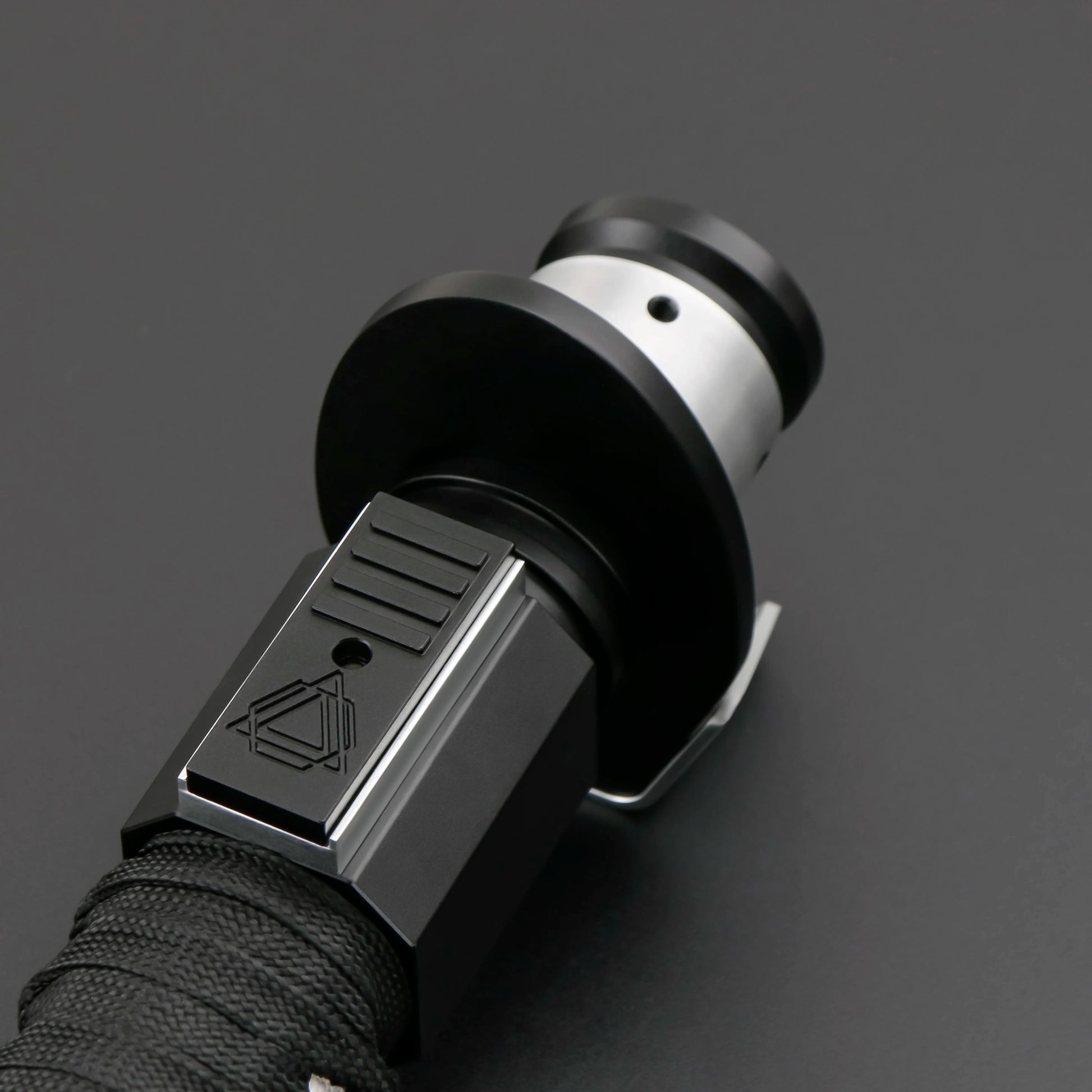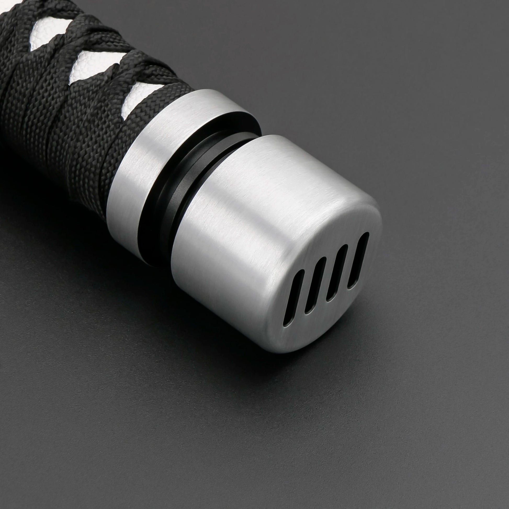 From the textured grip to the metal accents, this hilt is made to look amazing on your desk or in your hand.